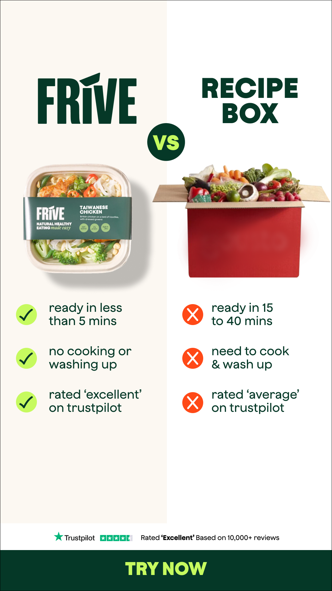⏳ Thought eating well meant hours in the kitchen? Think again. With Frive you get: 🧑🍳Restaurant-quality meals ready in minutes 🔪 No cooking, no chopping, no cleaning 🤝 Made by chefs. Approved by nutritionists 🌱 No UPFs, no seed oils, no nasties ⭐ The UK’s highest-rated meal service See the difference yourself, try Frive with 40% off today! See the difference yourself, try Frive with 40% off today!