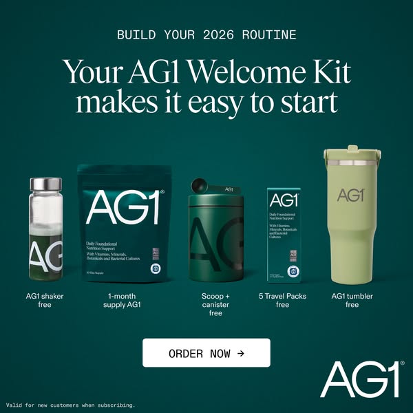 Take the first step towards a healthier you with the upgraded AG1! đź’š Monthly pack of the newly improved AG1 đź’š 10 free travel packs for on-the-go nutrition đź’š Free AG1 shaker with measuring spoon and stainless steel container Order now and feel the difference!