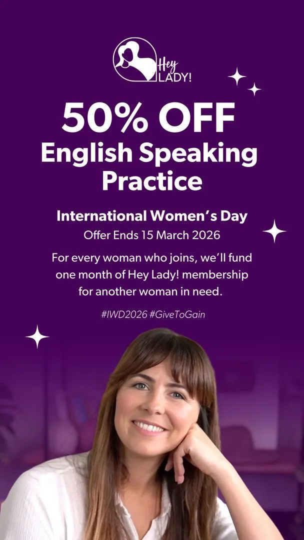 Still struggling to SPEAK English after years of learning? 😫 It’s NOT your fault - you just need real practice! 🚫 No one to practise WITH? 🎉 Try Hey Lady! FREE for 7 days! 👉 https://www.heylady.io/join-today The women-only English platform that helps you: 💬 Meet like-minded speaking partners 🗣️ Practise anytime, anywhere (unlimited video calls) 🎯 Get LIVE coaching, support & feedback 📆 Create a *regular* routine with weekly study guides 🥳 Make English a FUN part of life 🔥 Express yourself freely in English Trusted by 10,000+ women worldwide 🌎 It's the fastest, most affordable & effective way to develop English fluency and confidence - for work, travel & beyond! 💡 Don’t stay stuck - start speaking TODAY! Try 7 days FREE now 👉 https://www.heylady.io/join-today