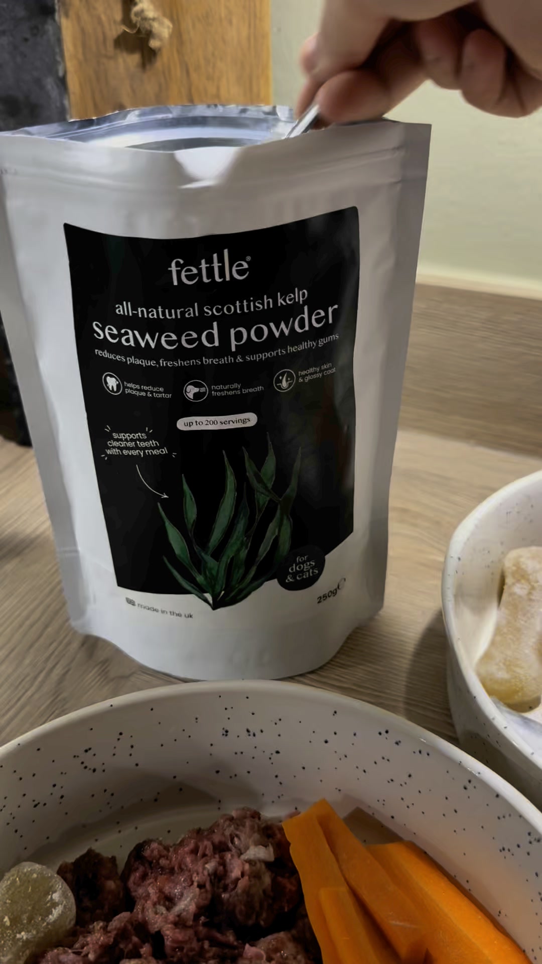 Three reasons why you shouldn't use kelp seaweed powder on your dog. It tackles blackened tartar naturally. Yep, say goodbye to stinky breath, dodgy gums. Their breath will be so fresh. You'll actually want puppy girls. It soothes itchy skin and brings back their shine. This stuff is like skincare, but for your talk. It relieves itching and gives their coat a healthy, glossy look. It helps to reduce shedding and boost overall wellness. Omega-3s nourish their skin so they shed less. Plus it supports their thyroid, immune system, and energy levels. It comes from a company called Fetal, and it's made with literally one ingredient, 100% natural kelp seaweed. No fillers, no junk, which is powerful nutrients that actually do something. So yeah, you probably shouldn't try it.