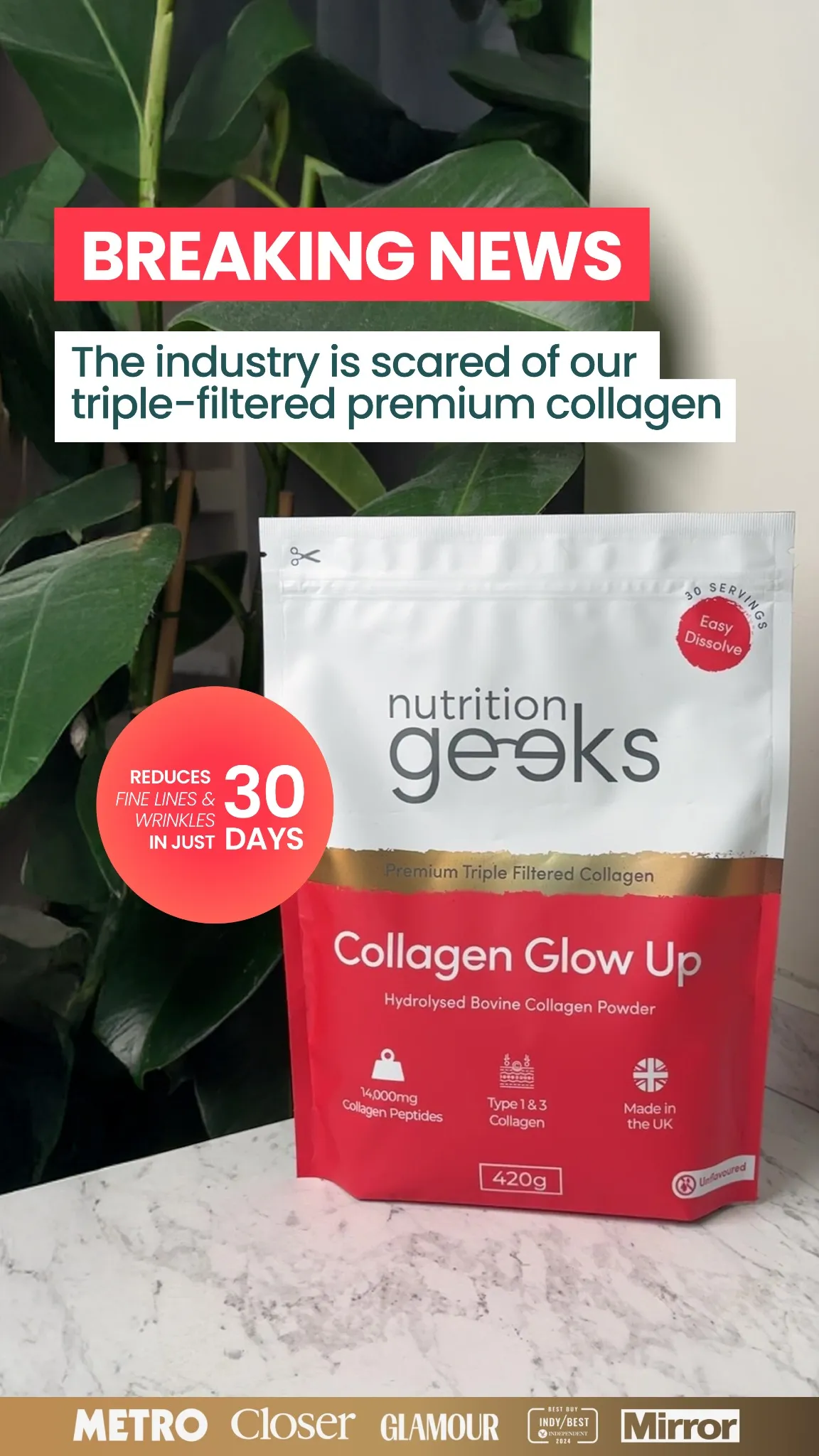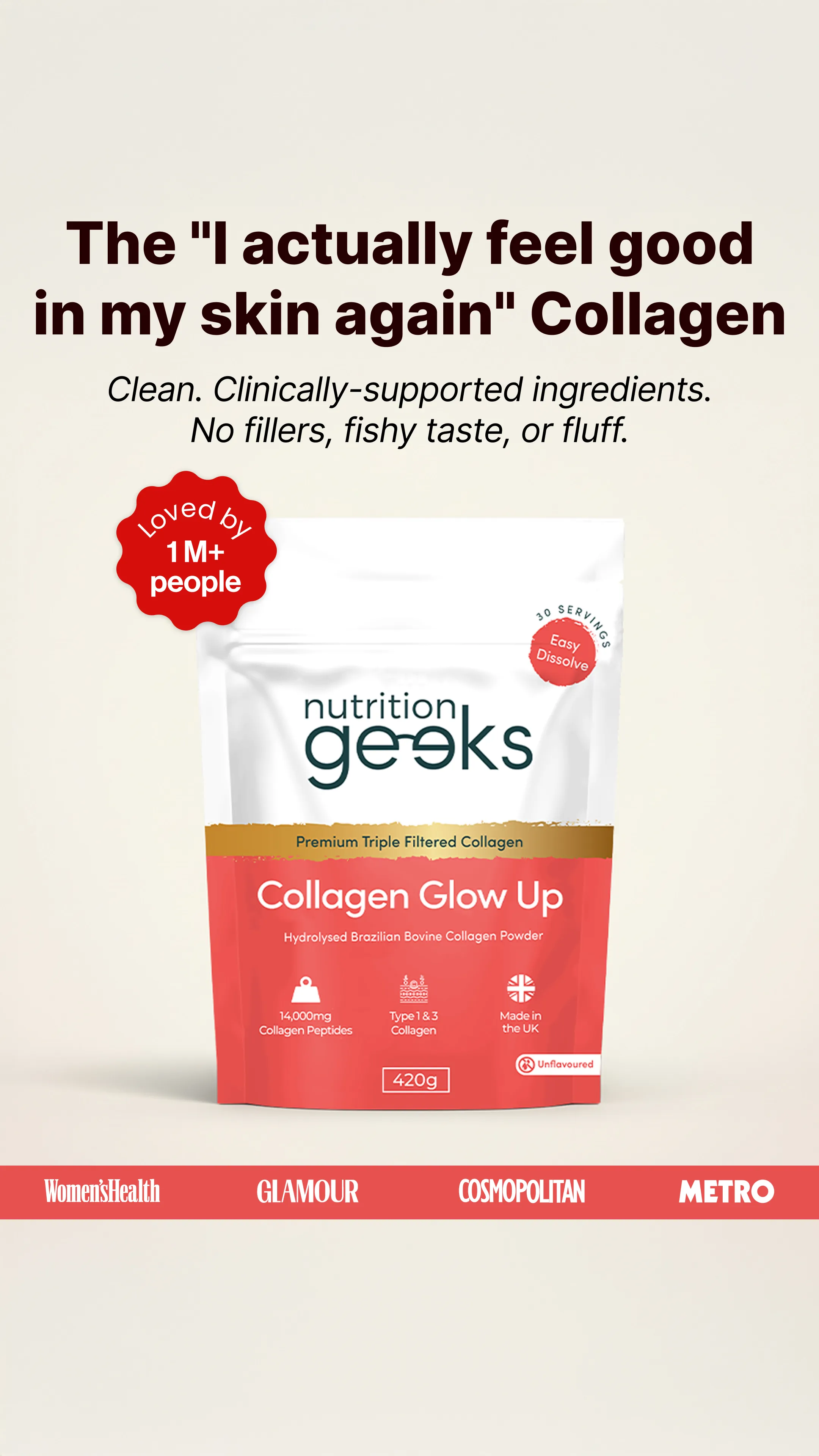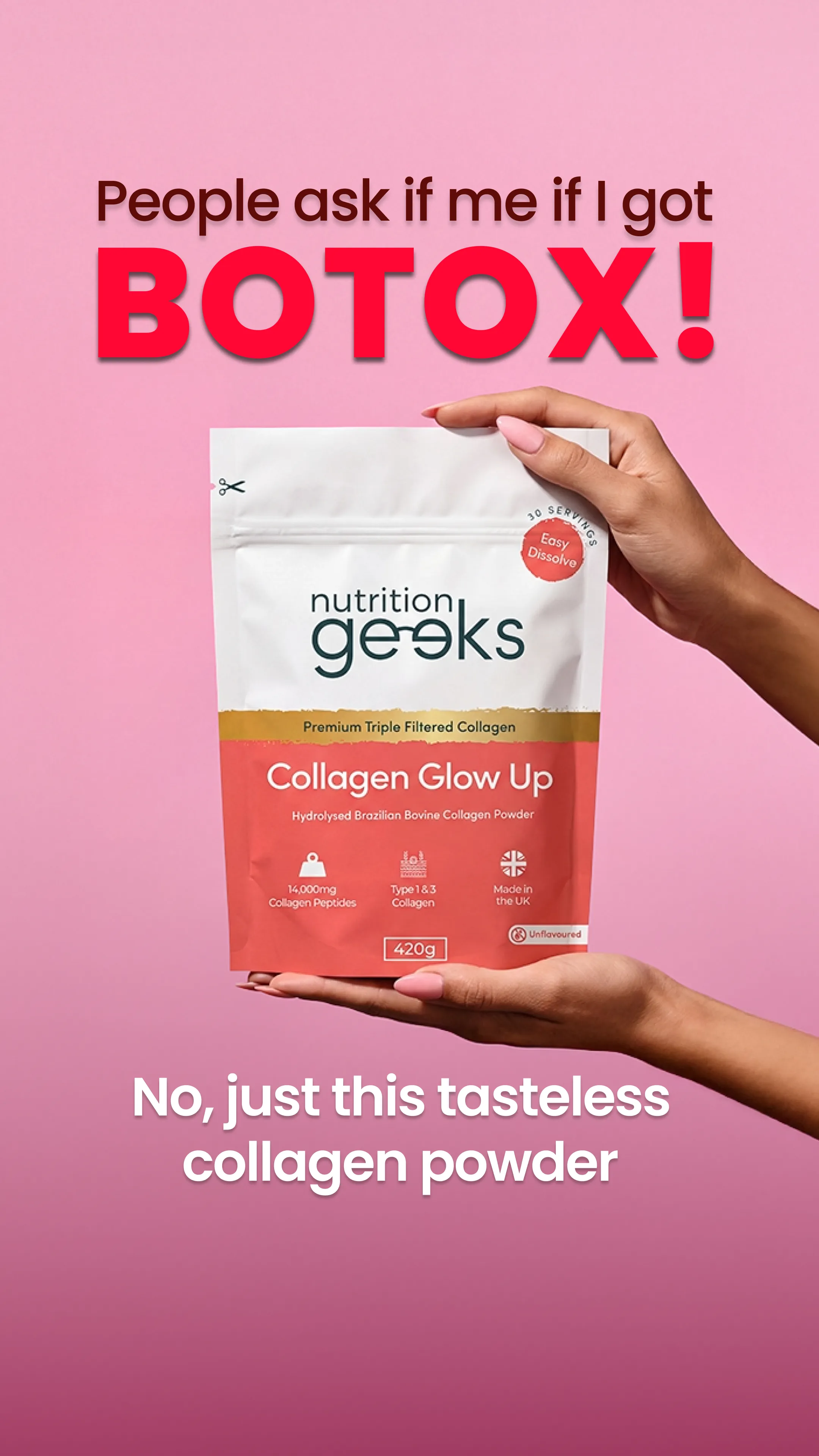 Want youthful skin? Stronger hair and nails? Improved gut health? 🤩 At just £16.99, it's the most affordable yet highest quality Collagen in the UK! Join 500,000+ UK customers who've rediscovered their glow with our New & Improved Collagen Glow Up Powder. ⭐️⭐️⭐️⭐️⭐️ "Only one word for it WOW. Within a week of starting the powder quite literally everyone I see daily commented on how ‘fresh’ I looked! I noticed a great difference in my skin almost immediately and dare I say it’s still improving - my hair is starting to feel much thicker too" Experience the benefits for yourself today with 30% OFF your first order! 📦 FREE delivery on all UK orders 🇬🇧 Made In The UK
